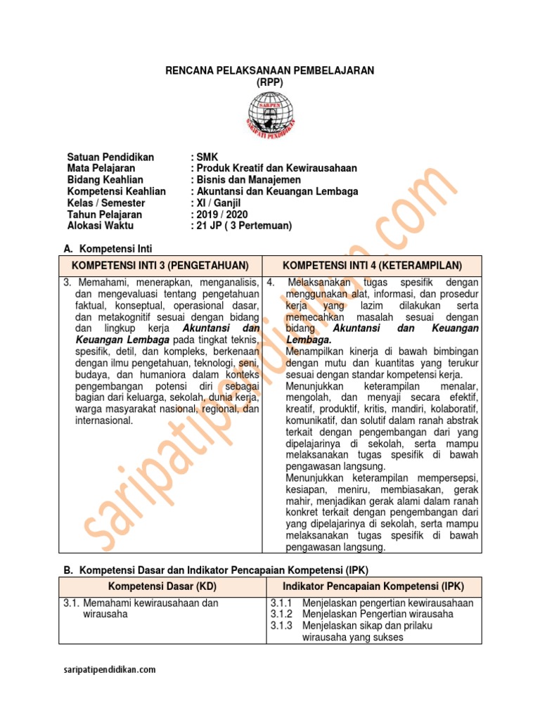 #produksimassal #produkkreatifdankewirausahaan #kewirausahaan pertemuan 1 guru : Contoh rpp sma ma 1 lembar taman terkini tahun 2020 kelas 10 11 12 lengkap. Perangkat terpenting untuk mencapai tujuan tersebut adalah kompetensi inti dan kompetensi dasar (kikd). Bersahabat/komunikatif pengamatan proses lembar pengamatan 2. Xi/ganjil bidang kerja produk kreatif dan kewirausahaan menampilkan kinerja di bawah bimbingan dengan 3.